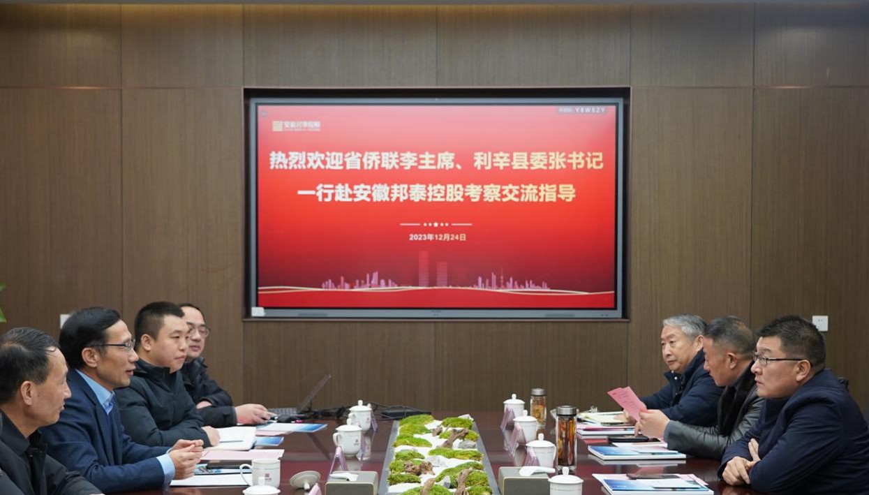 2023年12月24日,利辛縣委書記張吉明、利辛縣副縣長焦鵬、利辛縣城鄉(xiāng)發(fā)展建設(shè)投資集團(tuán)董事長劉富修等一行蒞臨安徽邦泰控股集團(tuán)走訪調(diào)研,安徽邦泰控股集團(tuán)董事長陳齊博士、總裁陳昌新、執(zhí)行總裁陳勇等陪同。