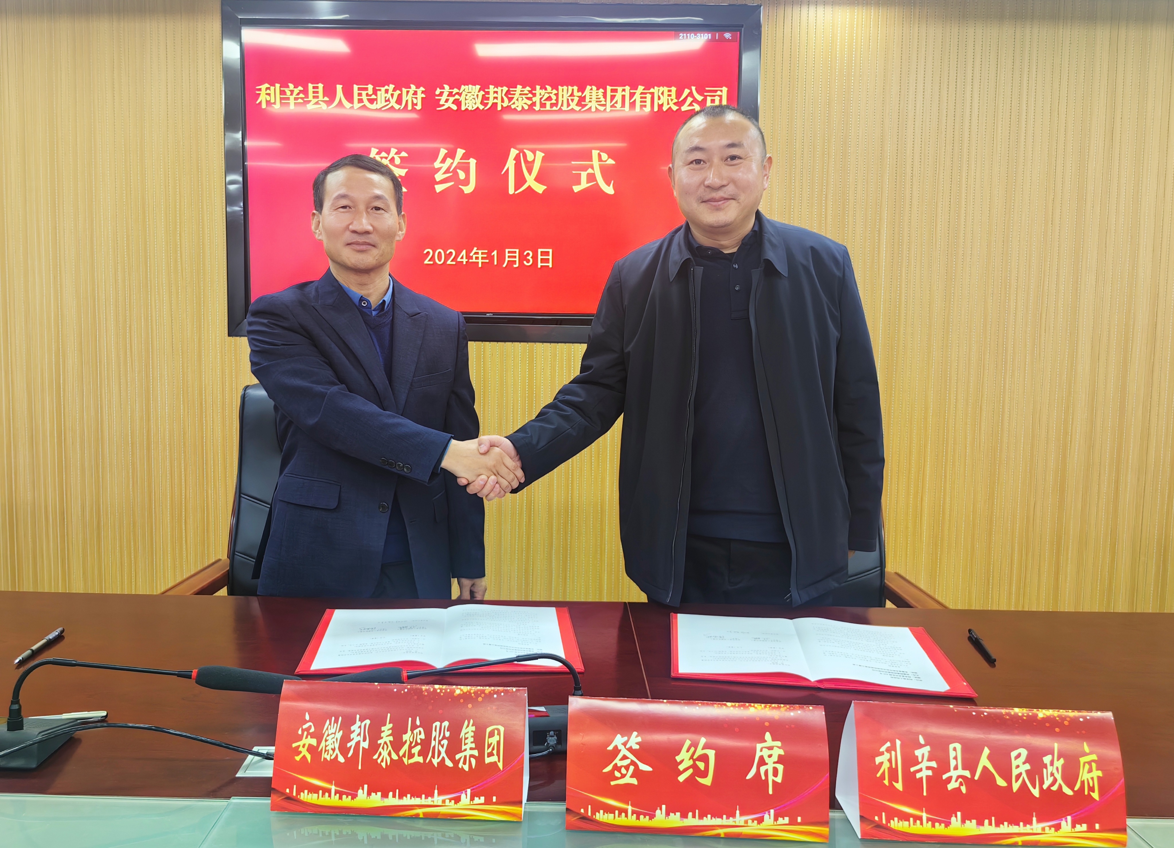 1月3日,安徽邦泰控股集團與利辛縣人民政府簽訂戰(zhàn)略合作協(xié)議。