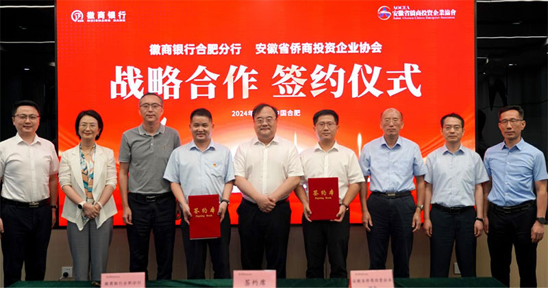 在路演活動(dòng)圓滿結(jié)束后,徽商銀行合肥分行與省僑企會(huì)的簽約儀式隨即舉行?;丈蹄y行代表首先對(duì)其金融惠企政策進(jìn)行了宣介。隨后,徽商銀行黨委書記、董事長(zhǎng)嚴(yán)琛發(fā)表了重要講話,表達(dá)了對(duì)僑商企業(yè)發(fā)展的高度關(guān)注和堅(jiān)定支持。在熱烈的掌聲中,省僑企會(huì)與徽商銀行合肥分行正式簽署了戰(zhàn)略合作協(xié)議。